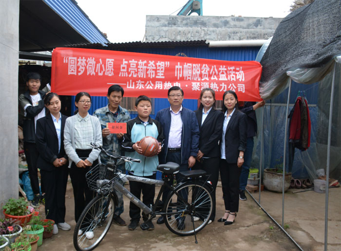 為深入貫徹落實(shí)“學(xué)黨史、悟思想、辦實(shí)事、開(kāi)新局”主題教育活動(dòng),發(fā)揮巾幗先鋒模范作用關(guān)愛(ài)社會(huì)弱勢(shì)群體,按照集團(tuán)公司安排部署,5月13日下午,在山東聚源熱力公司黨支部書(shū)記、董事長(zhǎng)丁潔的帶領(lǐng)下,聚源熱力客服中心一行開(kāi)展了“圓夢(mèng)微心愿,點(diǎn)亮新希望”巾幗脫貧公益活動(dòng)。